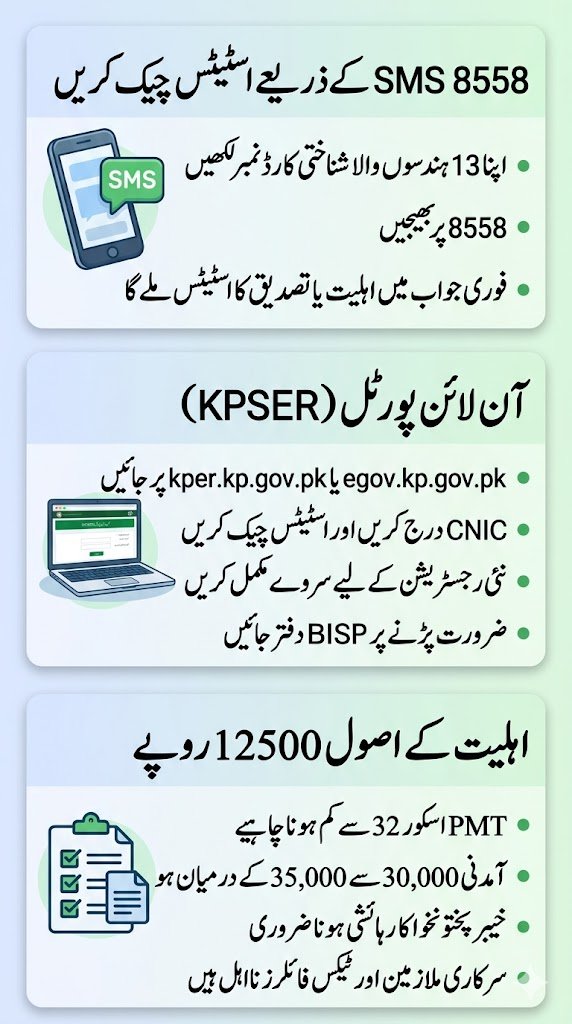 2. Dynamic Survey: If you haven’t been surveyed in the last two years, visit your nearest BISP Tehsil Office. They conduct the “Dynamic Survey” which updates the national poverty database used by the KP government to select 8558 beneficiaries.